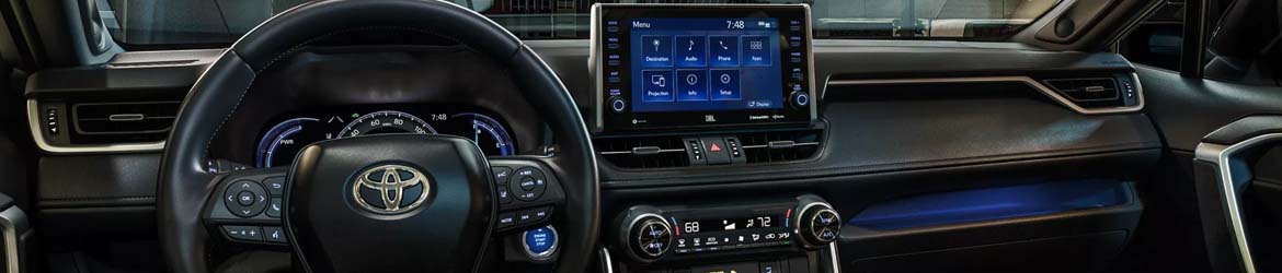 The technology features in the RAV4 start with a 7-inch touch screen, Apple CarPlay and Android Auto, USB ports, Bluetooth, and voice recognition. You'll get additional USB ports in the XLE, an 8-inch touch screen, a 120-volt power outlet, and a wireless version of Apple CarPlay and Android Auto in the Adventure and Limited. The Limited also adds integrated navigation and an 11-speaker JBL stereo.