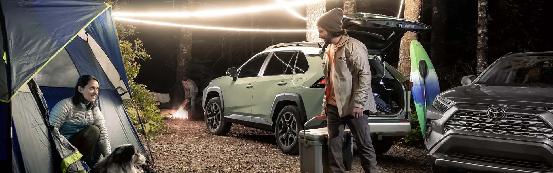 The RAV4 Adventure adds fender flares and taller roof rails, while the TRD Off-Road adds all-terrain tires and an off-road suspension, along with black exterior trim elements. The top-level RAV4 Limited comes with chrome exterior trim and adds puddle lights to the side mirrors.