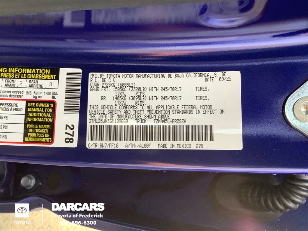 - Vehicle Name: Toyota Tacoma 4WD