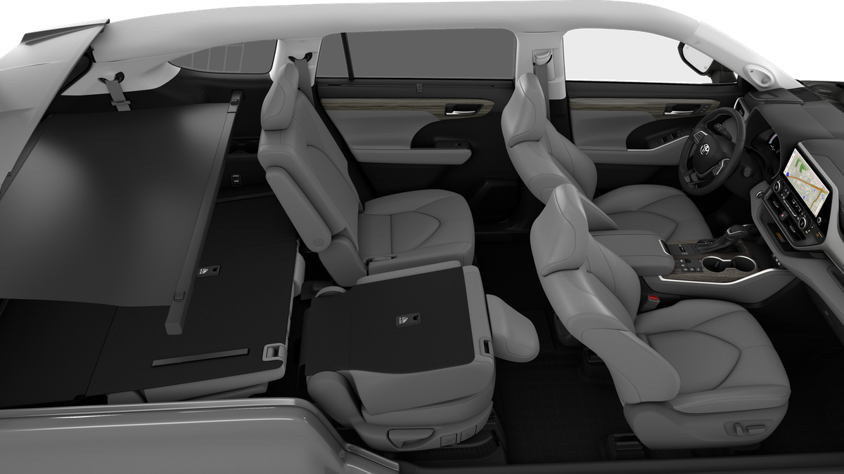 - 7-passenger seating with second-row fold-down captain's chairs and fold-down inboard armrests, adjustable headrests and two cup holders mounted on the floor; and 60/40 split, fold-flat third-row seats with sliding headrests and recline function
