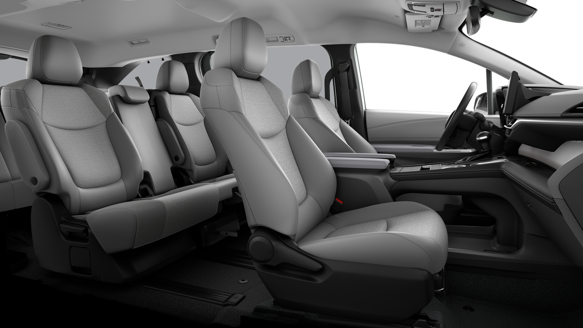 - 8-passenger seating with fabric second-row bench with stowable center seat