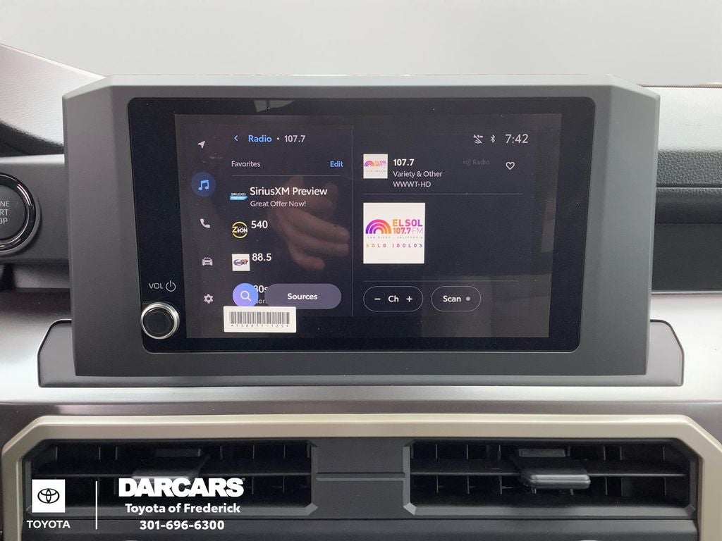 - 8-in. Toyota Audio Multimedia display with 6-speaker audio system, wireless Apple CarPlay® & Android Auto™ compatibility, SiriusXM® 3-month trial subscription. See toyota.com/connected-services for details.