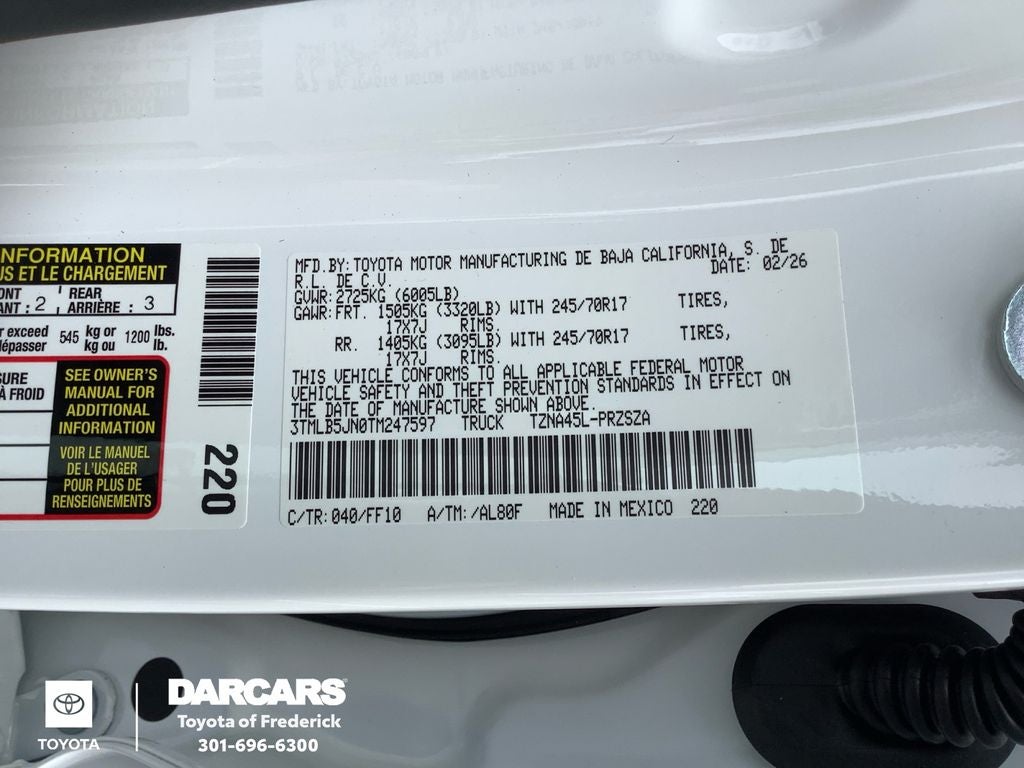 - Vehicle Name: Toyota Tacoma 4WD