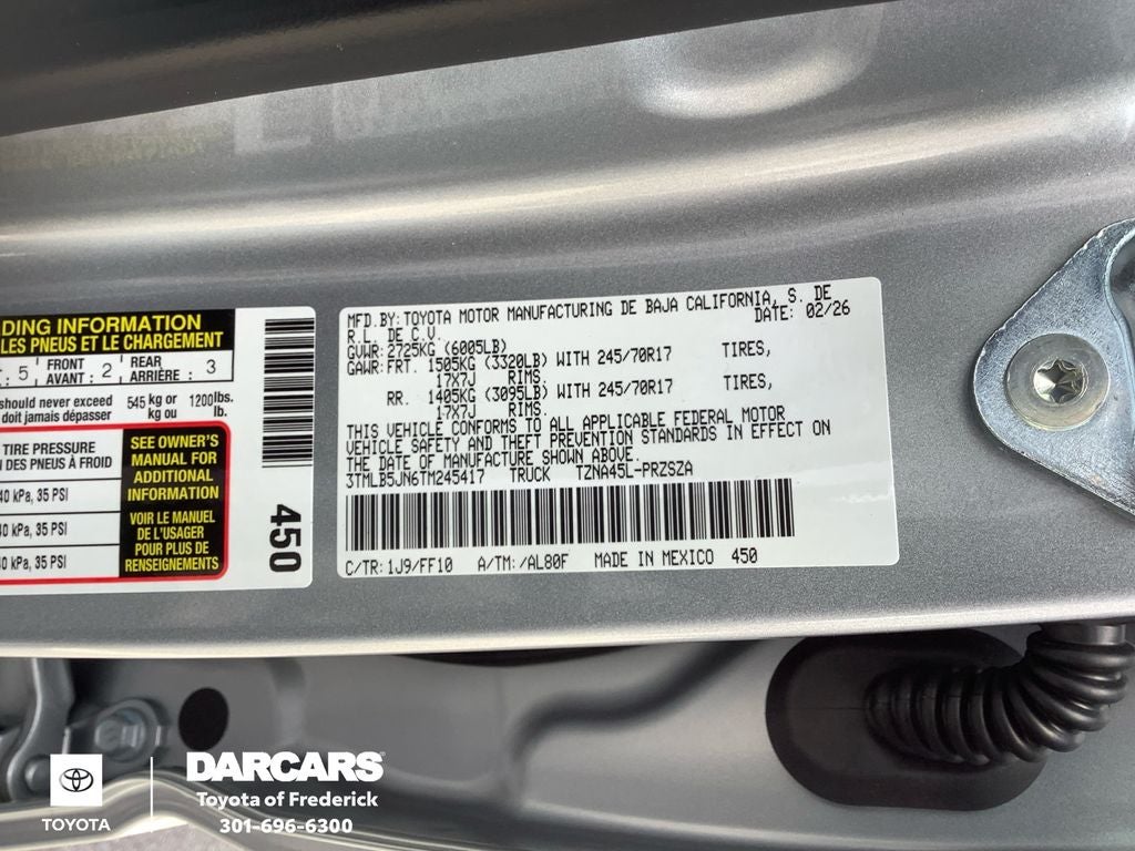 - Vehicle Name: Toyota Tacoma 4WD