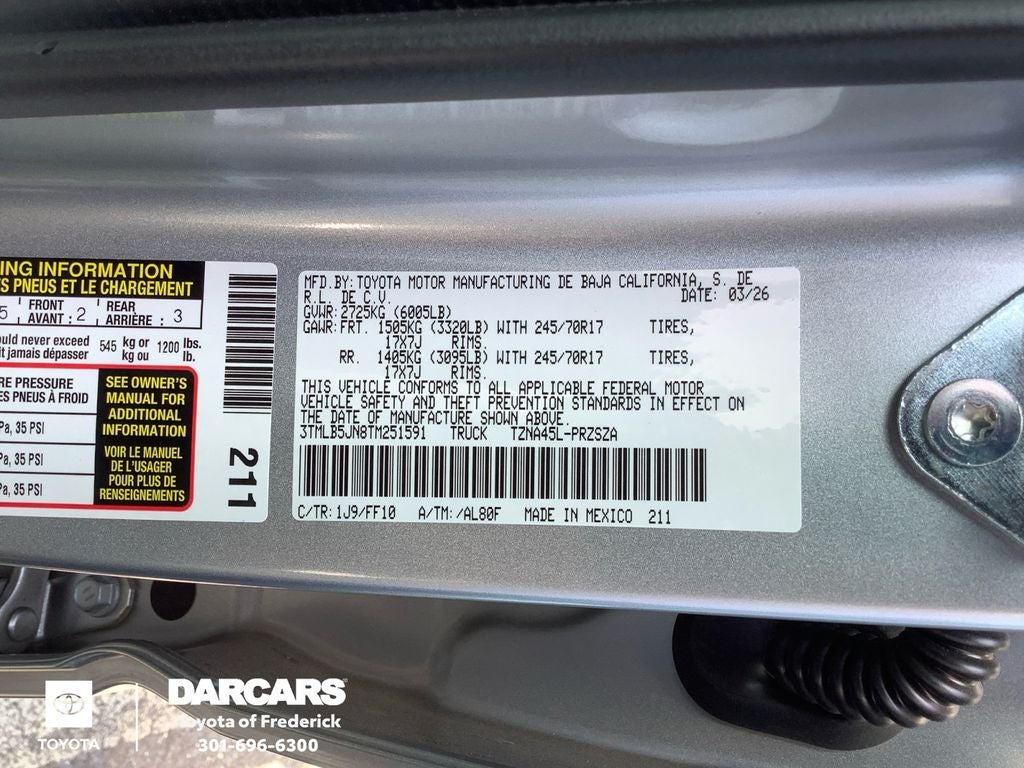 - Vehicle Name: Toyota Tacoma 4WD