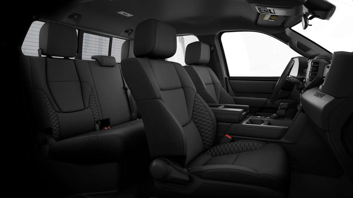 - Fabric-trimmed seats; 4-way manual adjustable driver and front passenger seats