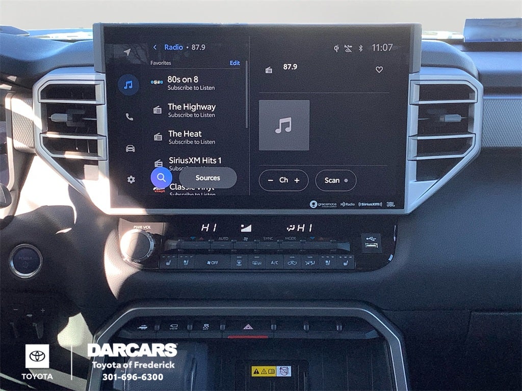 - Radio: Audio Plus -inc: 14-inch touchscreen, 9 speakers, Android Auto and Apple CarPlay compatible and SiriusXM w/3-month platinum plan trial subscription, See toyota.com/audio-multimedia for details, Connected services - Safety Connect w/up to 10-year trial, Remote Connect w/1-year trial, Drive Connect w/1-year trial, Service Connect w/up to 10-year trial, Wi-Fi Connect w/up to 3 GB within 1-month trial, See toyota.com/connected-services for details