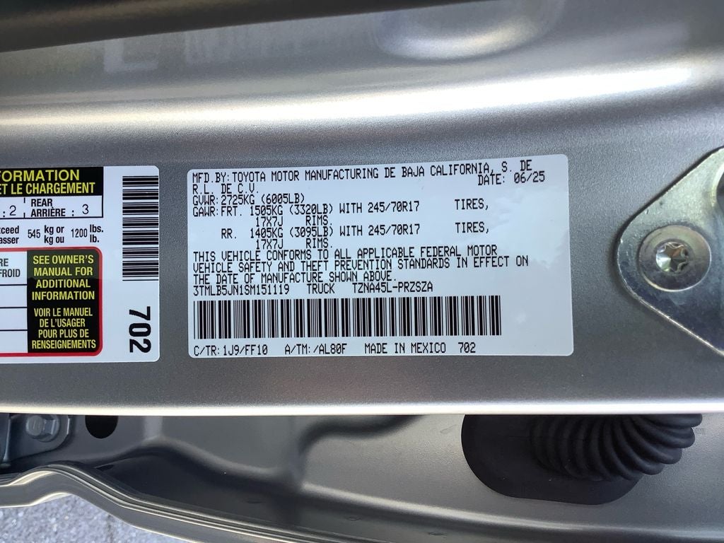 Stylish and capable, the 2025 Toyota Tacoma SR5 is the ultimate midsize pickup. With its exceptional performance, advanced technology, and uncompromising safety, this Tacoma is ready to elevate your driving experience. Visit our showroom today to take this impressive truck for a test drive and discover the power of Tacoma.